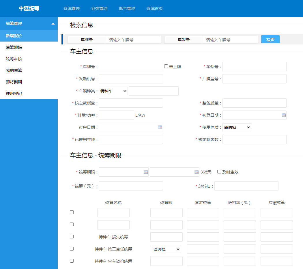 3.1登錄系統(tǒng) 成功之后 選擇 車(chē)輛類(lèi)型【特種車(chē),機(jī)動(dòng)車(chē)】,之后錄入具體數(shù)據(jù)